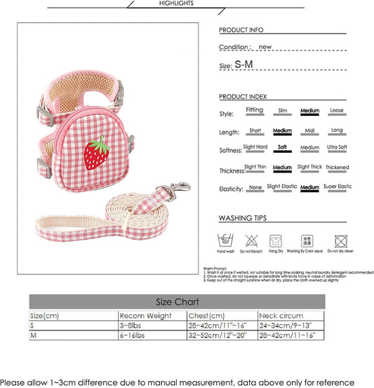 Pet Backpack Harness with Leash for Cat Small Dog Self Mini Carrier Back Pack Pocket Saddle Bags Puppy Bag with Training Lead Leash for Doggie Outdoor Travel Hiking Walking